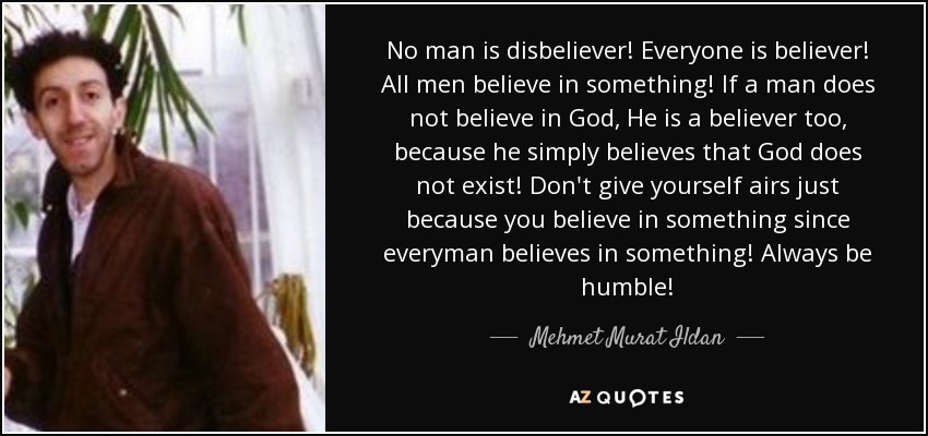 No man is disbeliever! Everyone is believer! All men believe in something! If a man does not believe in God, He is a believer too, because he simply believes that God does not exist! Don't give yourself airs just because you believe in something since everyman believes in something! Always be humble!