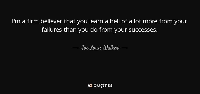 I'm a firm believer that you learn a hell of a lot more from your failures than you do from your successes.