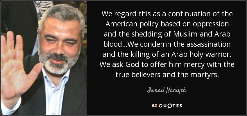 We regard this as a continuation of the American policy based on oppression and the shedding of Muslim and Arab blood…We condemn the assassination and the killing of an Arab holy warrior. We ask God to offer him mercy with the true believers and the martyrs.