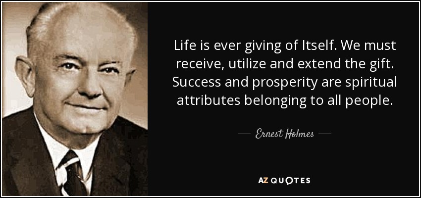 Life is ever giving of Itself. We must receive, utilize and extend the gift. Success and prosperity are spiritual attributes belonging to all people.