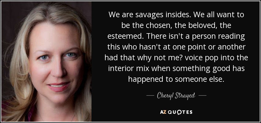 We are savages insides. We all want to be the chosen, the beloved, the esteemed. There isn't a person reading this who hasn't at one point or another had that why not me? voice pop into the interior mix when something good has happened to someone else.