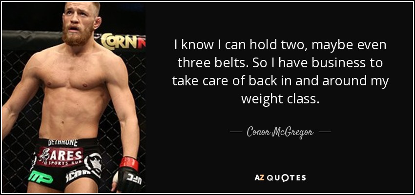I know I can hold two, maybe even three belts. So I have business to take care of back in and around my weight class.