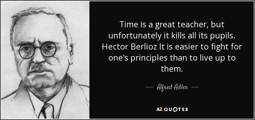 Time is a great teacher, but unfortunately it kills all its pupils. Hector Berlioz It is easier to fight for one's principles than to live up to them.
