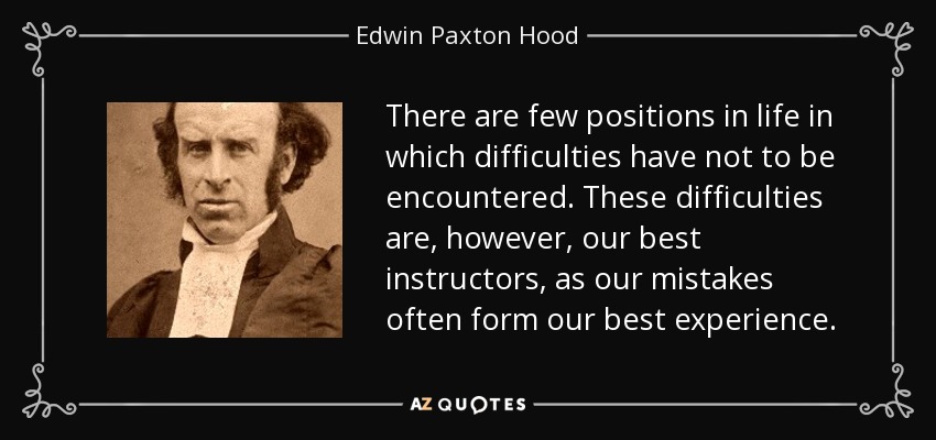 There are few positions in life in which difficulties have not to be encountered. These difficulties are, however, our best instructors, as our mistakes often form our best experience.