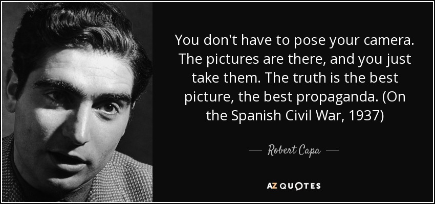You don't have to pose your camera. The pictures are there, and you just take them. The truth is the best picture, the best propaganda. (On the Spanish Civil War, 1937)