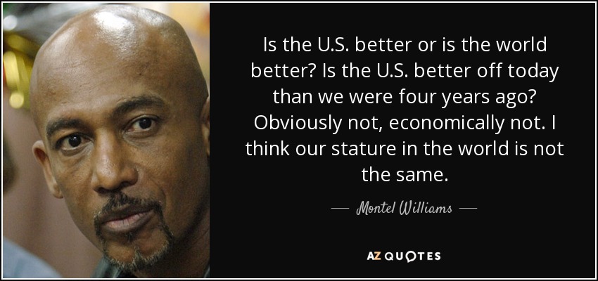 Is the U.S. better or is the world better? Is the U.S. better off today than we were four years ago? Obviously not, economically not. I think our stature in the world is not the same.