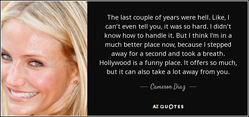 The last couple of years were hell. Like, I can't even tell you, it was so hard. I didn't know how to handle it. But I think I'm in a much better place now, because I stepped away for a second and took a breath. Hollywood is a funny place. It offers so much, but it can also take a lot away from you.