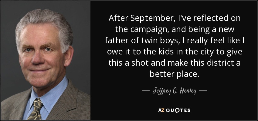 After September, I've reflected on the campaign, and being a new father of twin boys, I really feel like I owe it to the kids in the city to give this a shot and make this district a better place.