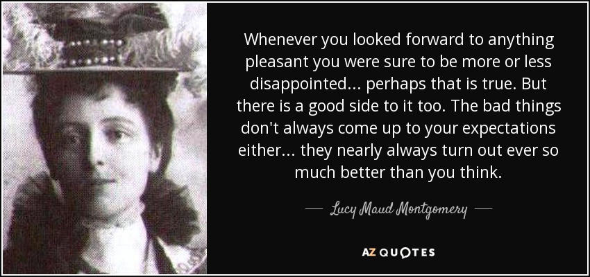 Whenever you looked forward to anything pleasant you were sure to be more or less disappointed . . . perhaps that is true. But there is a good side to it too. The bad things don't always come up to your expectations either . . . they nearly always turn out ever so much better than you think.