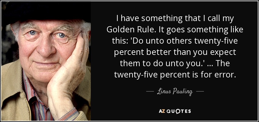 I have something that I call my Golden Rule. It goes something like this: 'Do unto others twenty-five percent better than you expect them to do unto you.' … The twenty-five percent is for error.