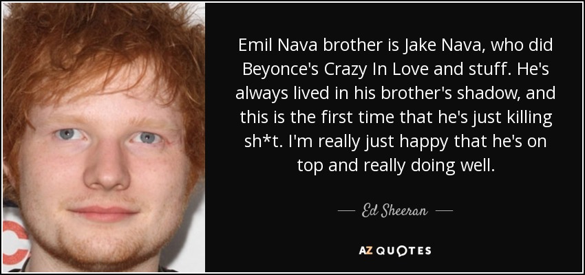 Emil Nava brother is Jake Nava, who did Beyonce's Crazy In Love and stuff. He's always lived in his brother's shadow, and this is the first time that he's just killing sh*t. I'm really just happy that he's on top and really doing well.