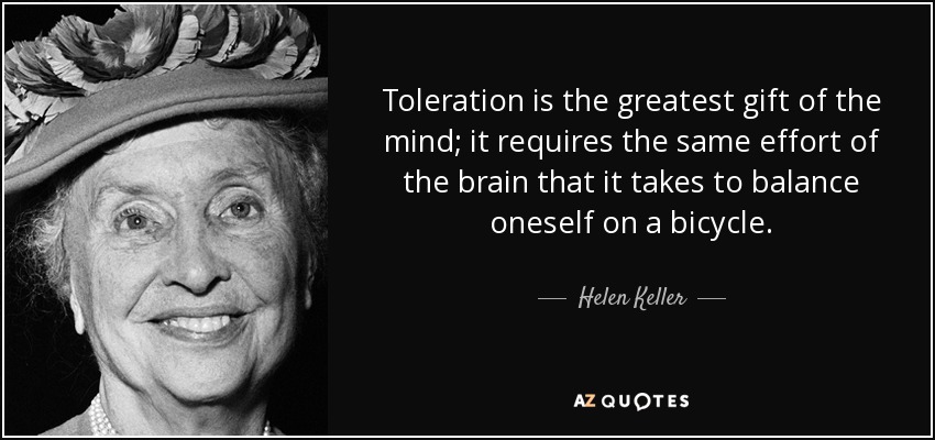 Toleration is the greatest gift of the mind; it requires the same effort of the brain that it takes to balance oneself on a bicycle.