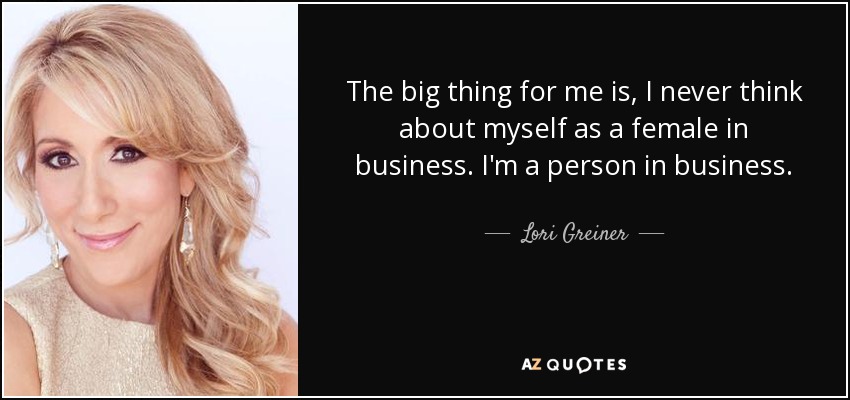 The big thing for me is, I never think about myself as a female in business. I'm a person in business.