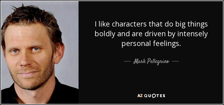 I like characters that do big things boldly and are driven by intensely personal feelings.