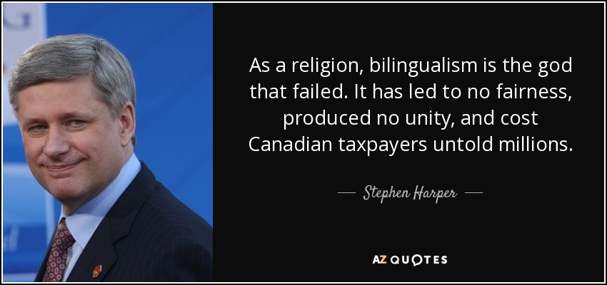 As a religion, bilingualism is the god that failed. It has led to no fairness, produced no unity, and cost Canadian taxpayers untold millions.