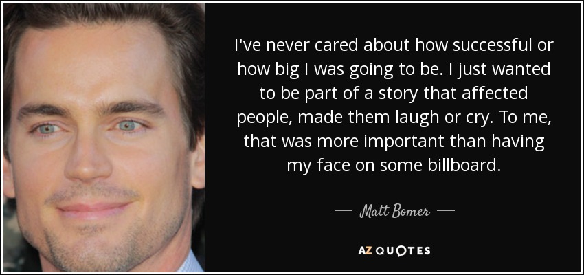 I've never cared about how successful or how big I was going to be. I just wanted to be part of a story that affected people, made them laugh or cry. To me, that was more important than having my face on some billboard.