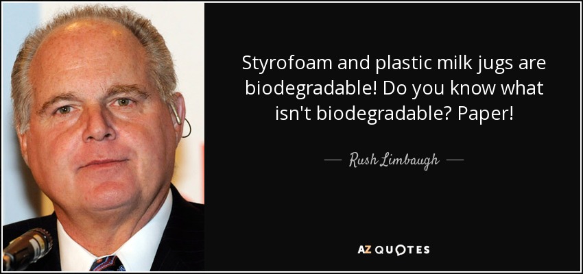 Styrofoam and plastic milk jugs are biodegradable! Do you know what isn't biodegradable? Paper!