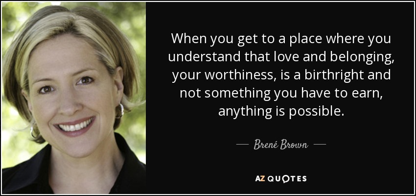 When you get to a place where you understand that love and belonging, your worthiness, is a birthright and not something you have to earn, anything is possible.