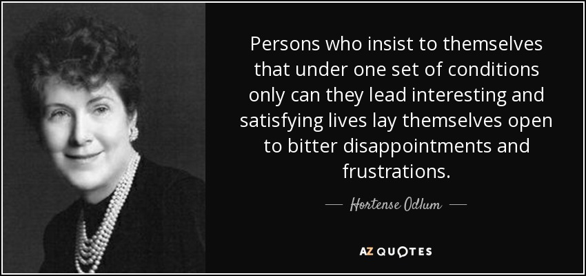 Persons who insist to themselves that under one set of conditions only can they lead interesting and satisfying lives lay themselves open to bitter disappointments and frustrations.