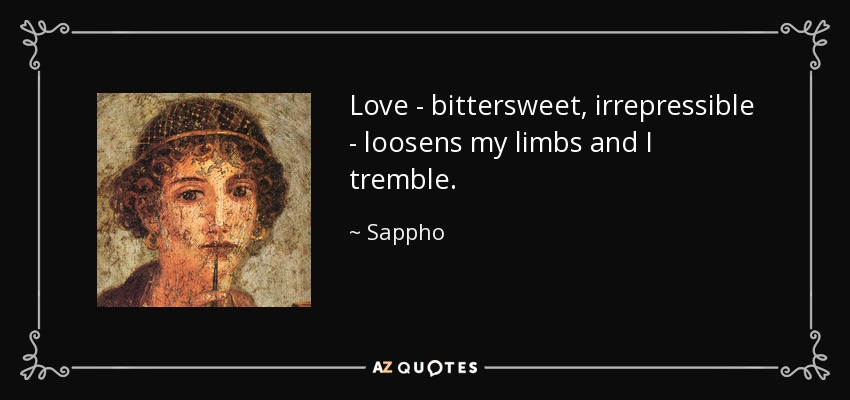 Love - bittersweet, irrepressible - loosens my limbs and I tremble.