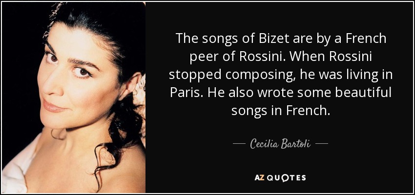 The songs of Bizet are by a French peer of Rossini. When Rossini stopped composing, he was living in Paris. He also wrote some beautiful songs in French.