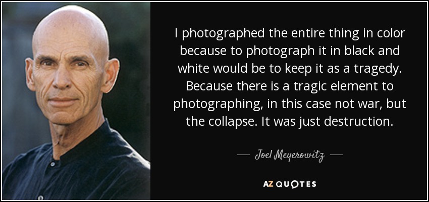 I photographed the entire thing in color because to photograph it in black and white would be to keep it as a tragedy. Because there is a tragic element to photographing, in this case not war, but the collapse. It was just destruction.