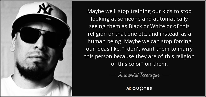 Maybe we'll stop training our kids to stop looking at someone and automatically seeing them as Black or White or of this religion or that one etc, and instead, as a human being. Maybe we can stop forcing our ideas like, "I don't want them to marry this person because they are of this religion or this color" on them.