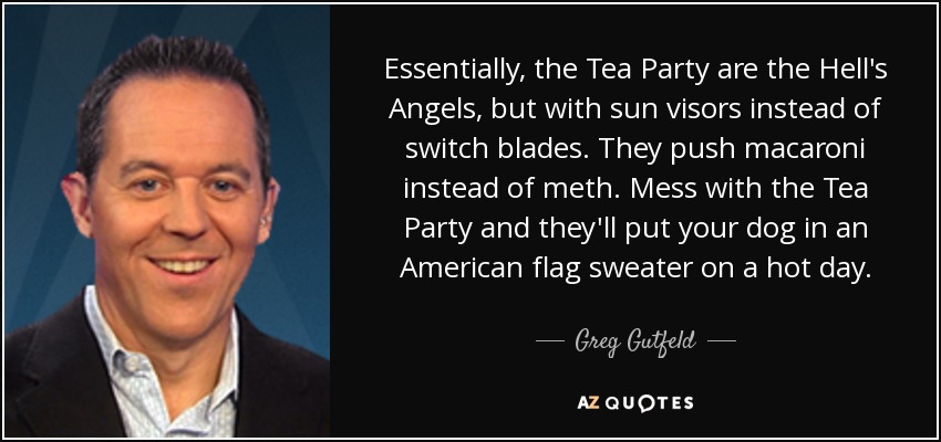 Essentially, the Tea Party are the Hell's Angels, but with sun visors instead of switch blades. They push macaroni instead of meth. Mess with the Tea Party and they'll put your dog in an American flag sweater on a hot day.