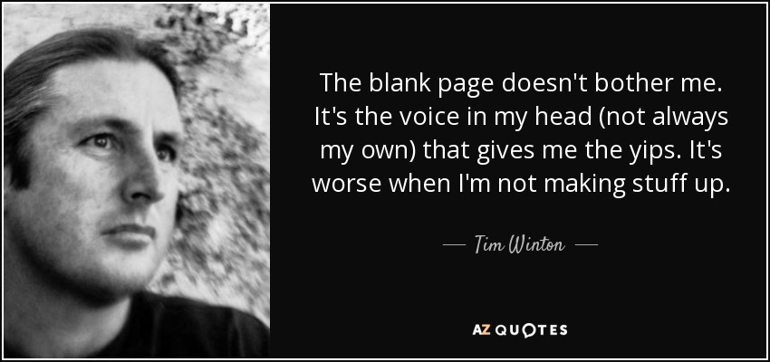 The blank page doesn't bother me. It's the voice in my head (not always my own) that gives me the yips. It's worse when I'm not making stuff up.