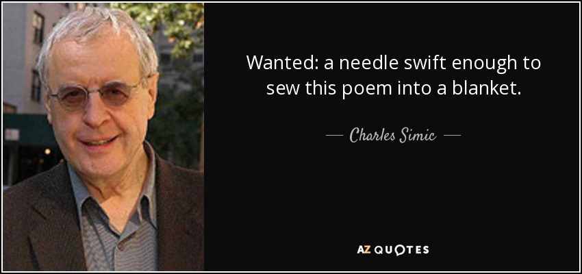 Wanted: a needle swift enough to sew this poem into a blanket.