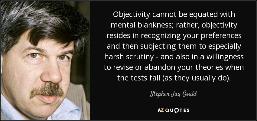 Objectivity cannot be equated with mental blankness; rather, objectivity resides in recognizing your preferences and then subjecting them to especially harsh scrutiny - and also in a willingness to revise or abandon your theories when the tests fail (as they usually do).