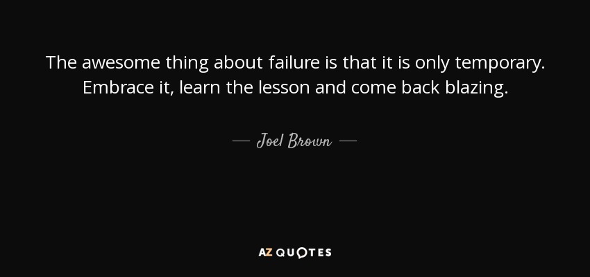 The awesome thing about failure is that it is only temporary. Embrace it, learn the lesson and come back blazing.