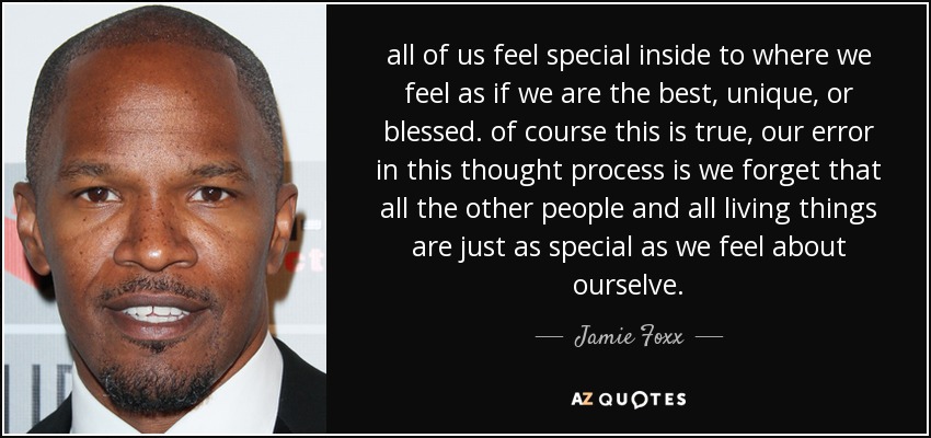 all of us feel special inside to where we feel as if we are the best, unique, or blessed. of course this is true, our error in this thought process is we forget that all the other people and all living things are just as special as we feel about ourselve.
