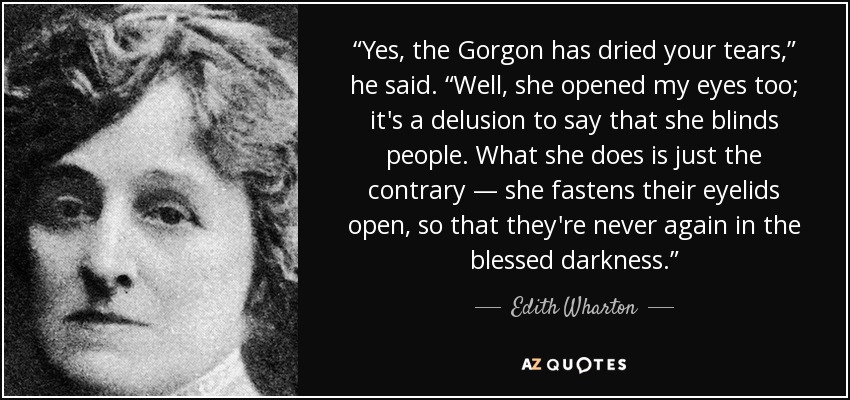 “Yes, the Gorgon has dried your tears,” he said. “Well, she opened my eyes too; it's a delusion to say that she blinds people. What she does is just the contrary — she fastens their eyelids open, so that they're never again in the blessed darkness.”