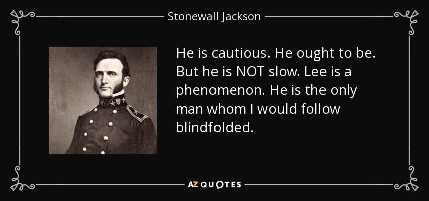 He is cautious. He ought to be. But he is NOT slow. Lee is a phenomenon. He is the only man whom I would follow blindfolded.