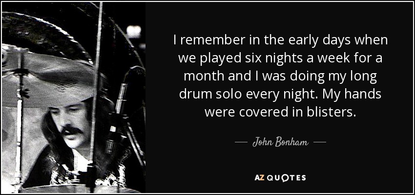 I remember in the early days when we played six nights a week for a month and I was doing my long drum solo every night. My hands were covered in blisters.