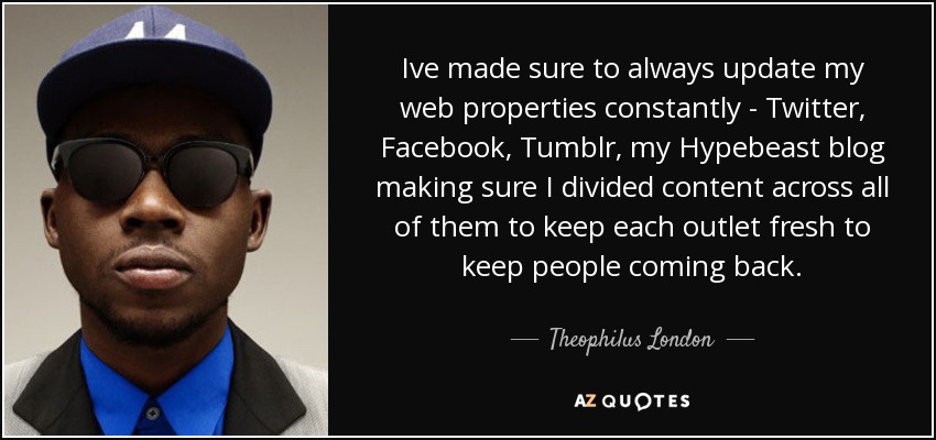 Ive made sure to always update my web properties constantly - Twitter, Facebook, Tumblr, my Hypebeast blog making sure I divided content across all of them to keep each outlet fresh to keep people coming back.