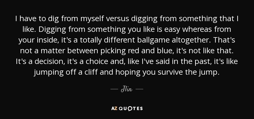I have to dig from myself versus digging from something that I like. Digging from something you like is easy whereas from your inside, it's a totally different ballgame altogether. That's not a matter between picking red and blue, it's not like that. It's a decision, it's a choice and, like I've said in the past, it's like jumping off a cliff and hoping you survive the jump.