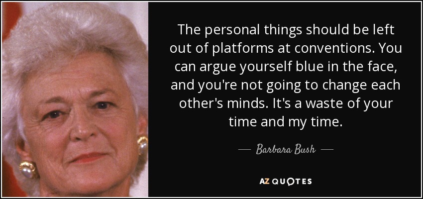 The personal things should be left out of platforms at conventions. You can argue yourself blue in the face, and you're not going to change each other's minds. It's a waste of your time and my time.