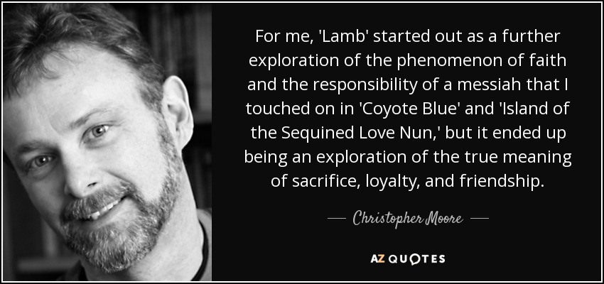 For me, 'Lamb' started out as a further exploration of the phenomenon of faith and the responsibility of a messiah that I touched on in 'Coyote Blue' and 'Island of the Sequined Love Nun,' but it ended up being an exploration of the true meaning of sacrifice, loyalty, and friendship.