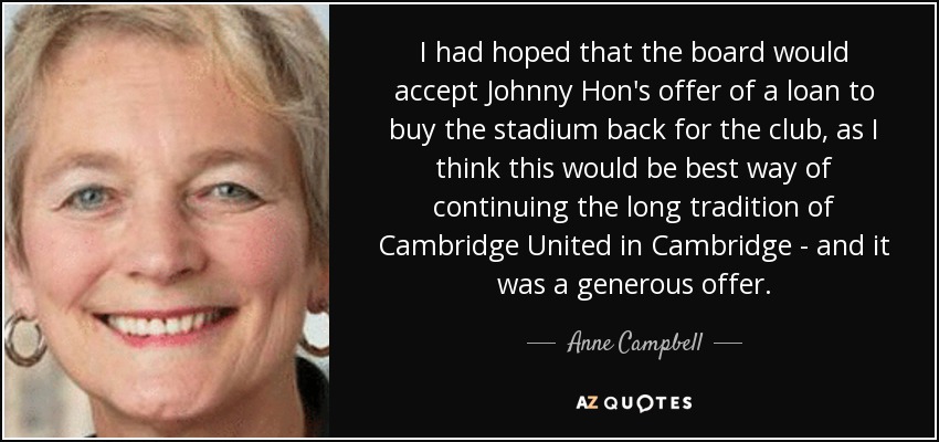 I had hoped that the board would accept Johnny Hon's offer of a loan to buy the stadium back for the club, as I think this would be best way of continuing the long tradition of Cambridge United in Cambridge - and it was a generous offer.
