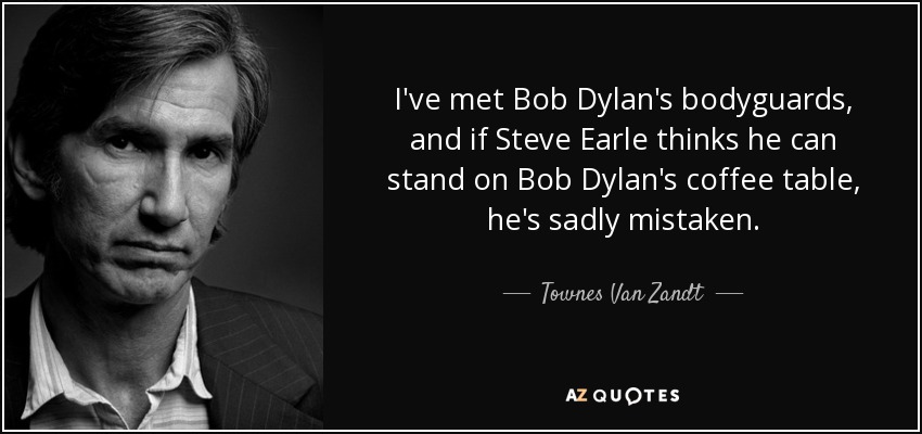 I've met Bob Dylan's bodyguards, and if Steve Earle thinks he can stand on Bob Dylan's coffee table, he's sadly mistaken.