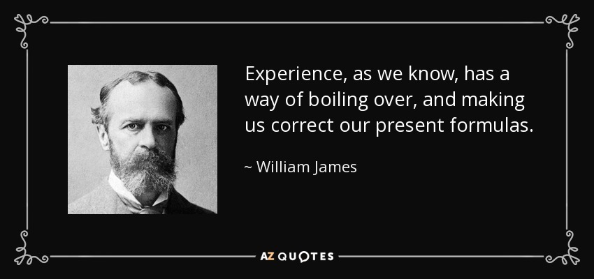 Experience, as we know, has a way of boiling over, and making us correct our present formulas.