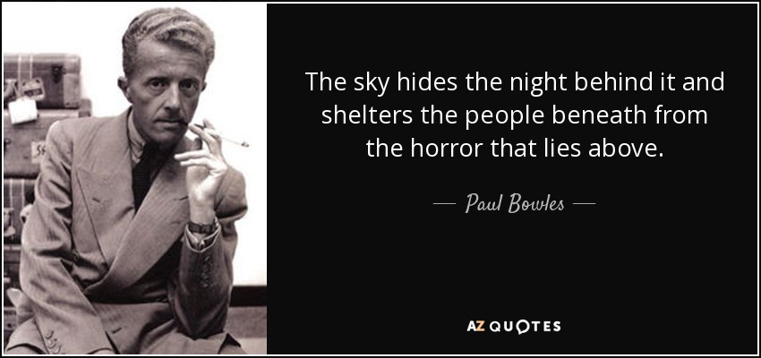 The sky hides the night behind it and shelters the people beneath from the horror that lies above.