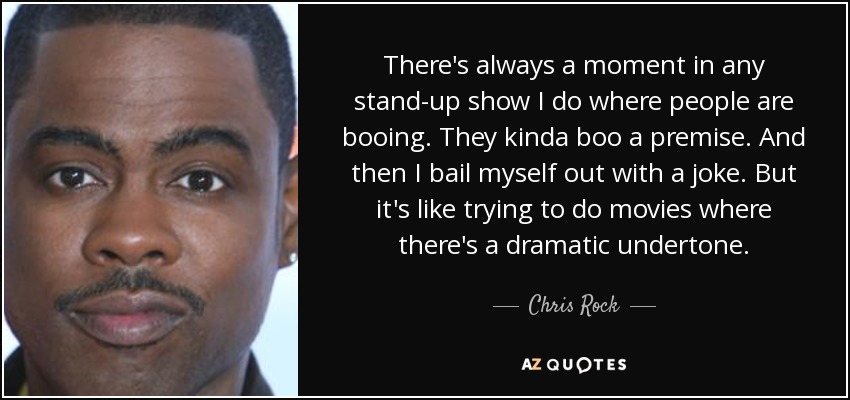 There's always a moment in any stand-up show I do where people are booing. They kinda boo a premise. And then I bail myself out with a joke. But it's like trying to do movies where there's a dramatic undertone.