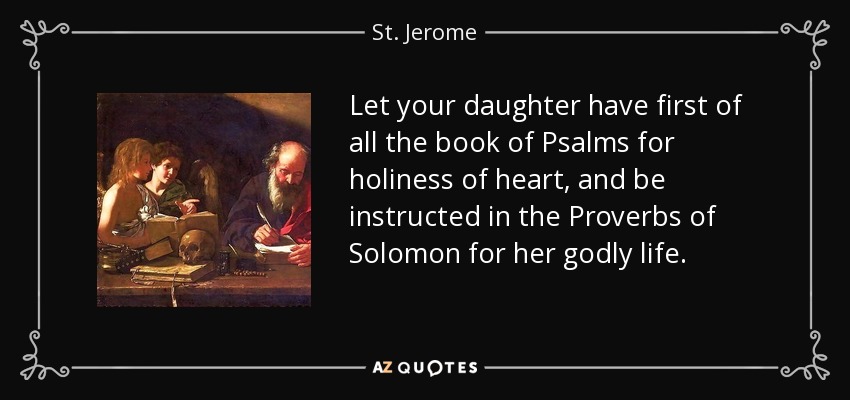 Let your daughter have first of all the book of Psalms for holiness of heart, and be instructed in the Proverbs of Solomon for her godly life.