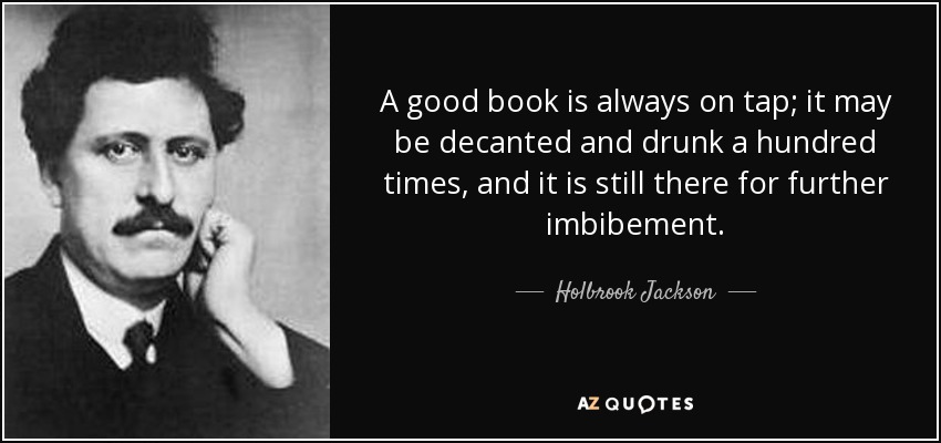 A good book is always on tap; it may be decanted and drunk a hundred times, and it is still there for further imbibement.