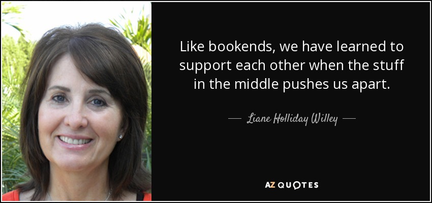 Like bookends, we have learned to support each other when the stuff in the middle pushes us apart.