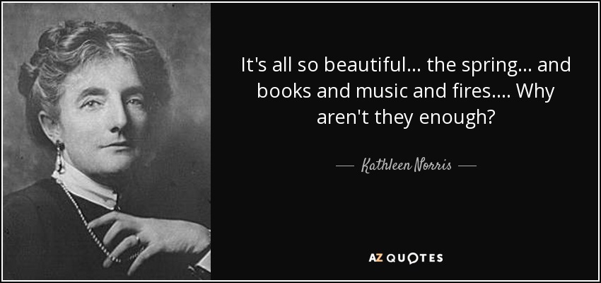 It's all so beautiful . . . the spring . . . and books and music and fires. . . . Why aren't they enough?