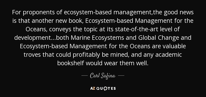 For proponents of ecosystem-based management,the good news is that another new book, Ecosystem-based Management for the Oceans, conveys the topic at its state-of-the-art level of development...both Marine Ecosystems and Global Change and Ecosystem-based Management for the Oceans are valuable troves that could profitably be mined, and any academic bookshelf would wear them well.